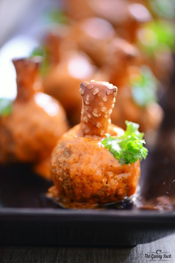 See Full Recipe: https://www.thegunnysack.com/buffalo-meatball-pumpkins/